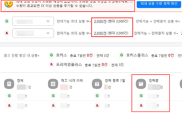 ESM(옥션, G마켓) 어드민 내 판매가능 최대 상품 수를 초과하여 상품이 등록되어 발생한 실패메세지