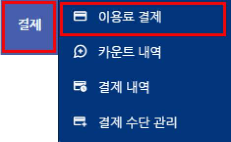 이용료 결제는 솔루션 내 결제> 이용료 결제 메뉴에서 진행 가능합니다.
