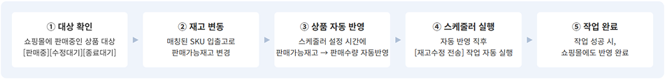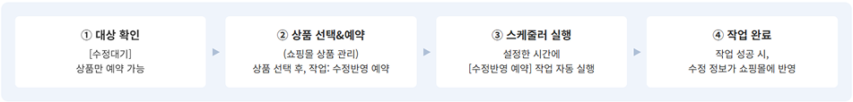 • 설정한 시간에 스케줄러가 실행되어, 예약된 상품의 수정 정보가 쇼핑몰로 자동 전송됩니다.