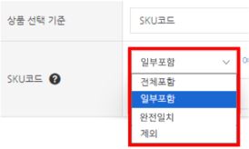 - 일부포함 : 설정한 SKU상품 중 최소 1개라도 주문에 매칭